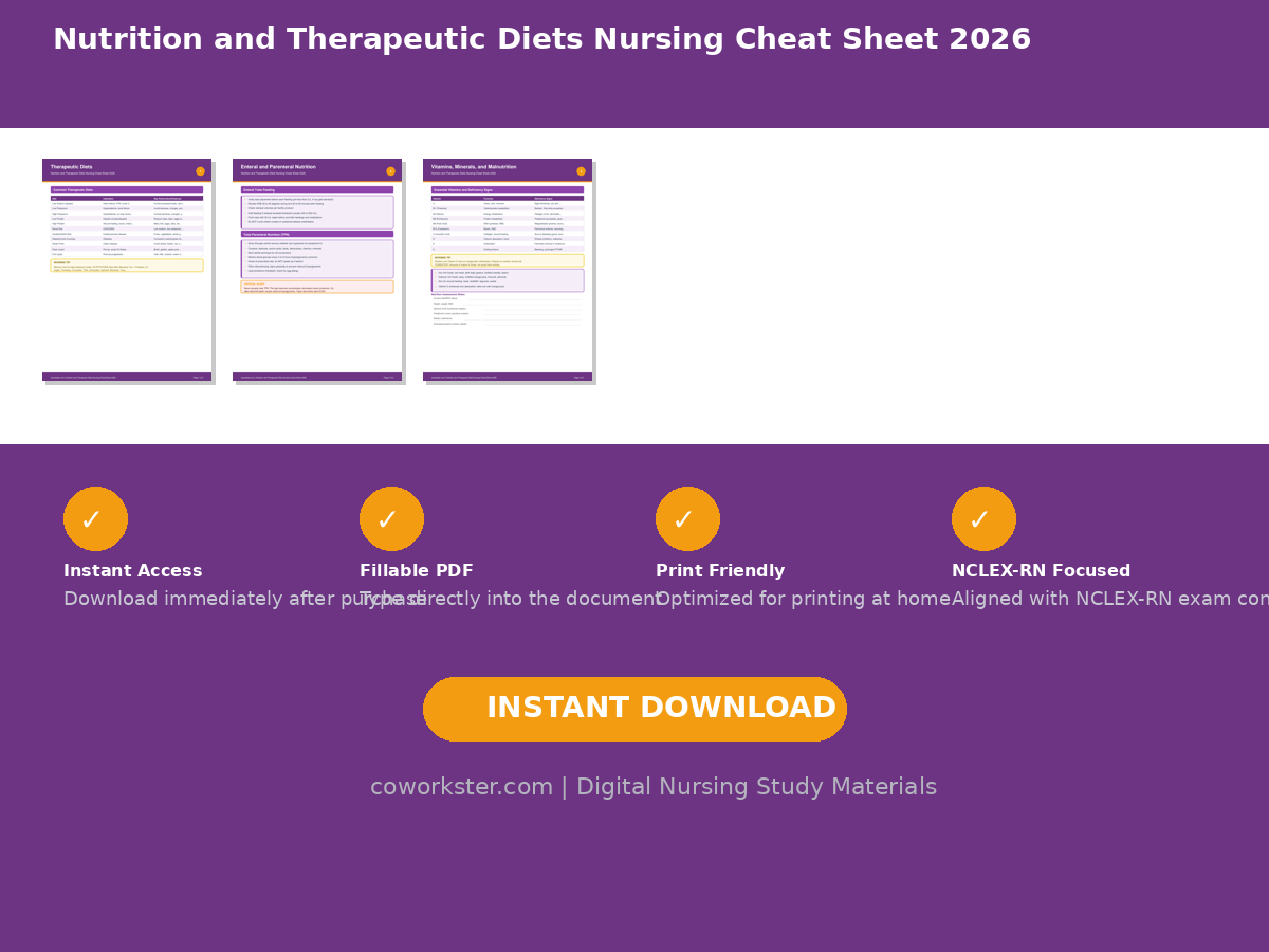 Studying for NCLEX-RN can feel overwhelming, but having the right study materials makes all the difference. This cheat sheet was created specifically for nursing students studying nutrition and therapeutic diets who want a clear, organized, and comprehensive resource they can actually use. Whether you are reviewing for the first time or doing a final cram session, this 3 page fillable PDF gives you exactly what you need in one place.
