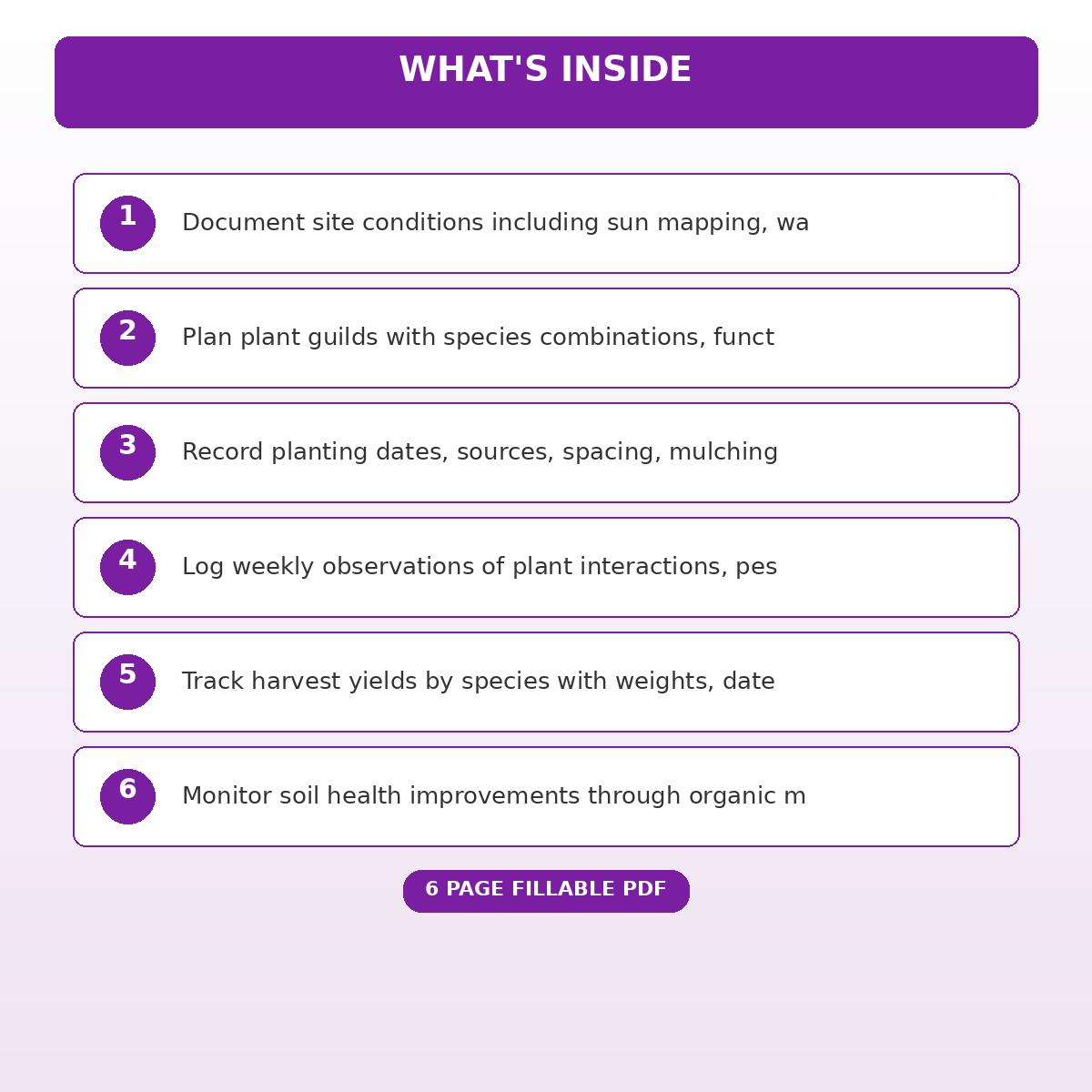 If you have been looking for a permaculture garden design observation and yield tracking journal that actually works the way you need it to, this is it. We designed this 6 page fillable PDF specifically for Permaculture practitioners and food forest gardeners who want something practical, organized, and ready to use right away.