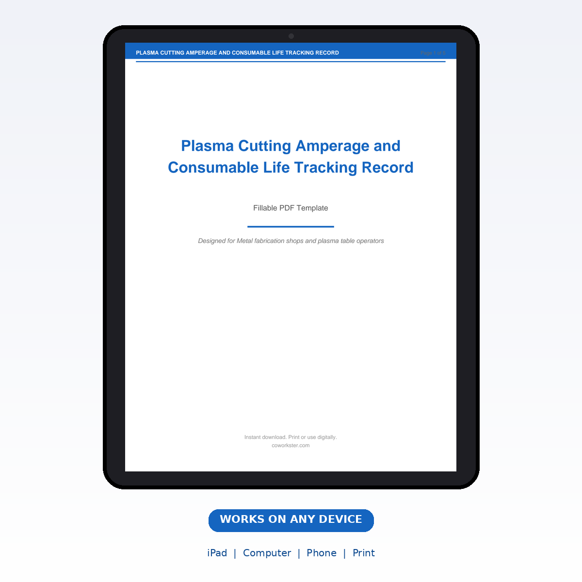 If you have been looking for a plasma cutting amperage and consumable life tracking record that actually works the way you need it to, this is it. We designed this 5 page fillable PDF specifically for Metal fabrication shops and plasma table operators who want something practical, organized, and ready to use right away.
