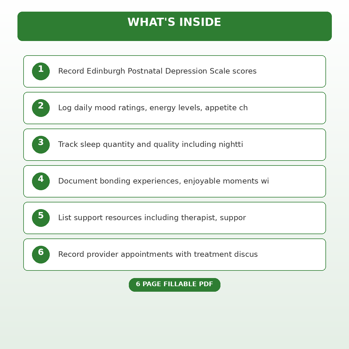 If you have been looking for a postpartum depression mood tracking and support resource journal that actually works the way you need it to, this is it. We designed this 6 page fillable PDF specifically for New mothers experiencing postpartum mood disorders who want something practical, organized, and ready to use right away.