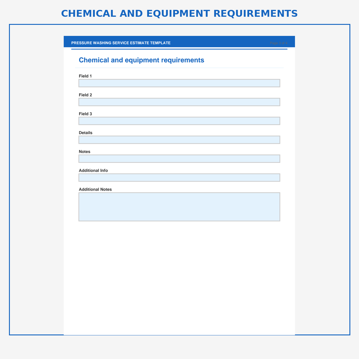 Chemical and equipment requirements