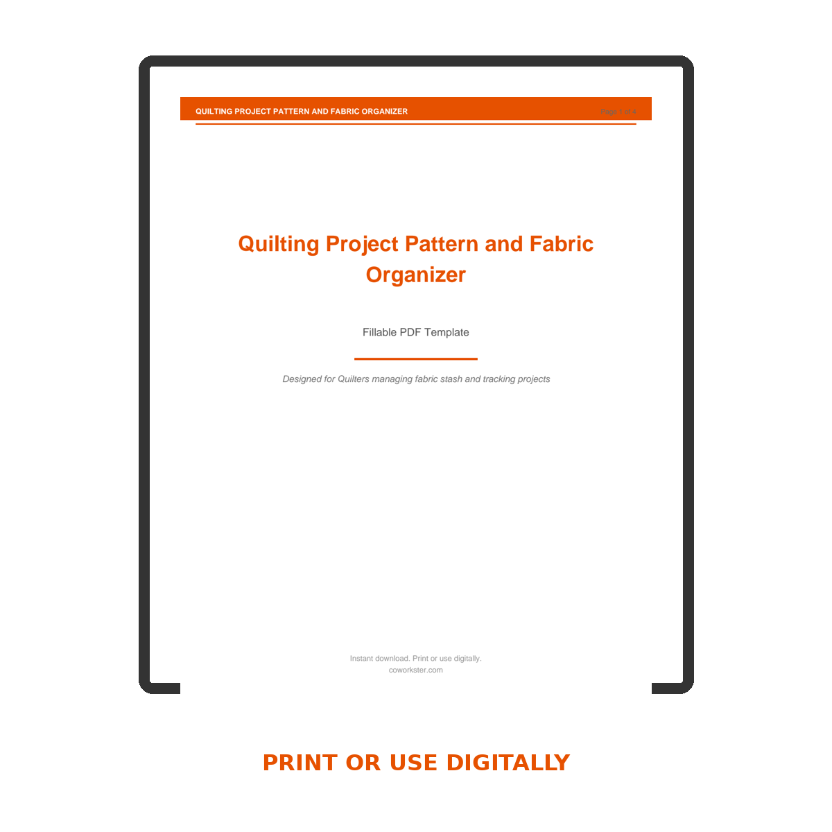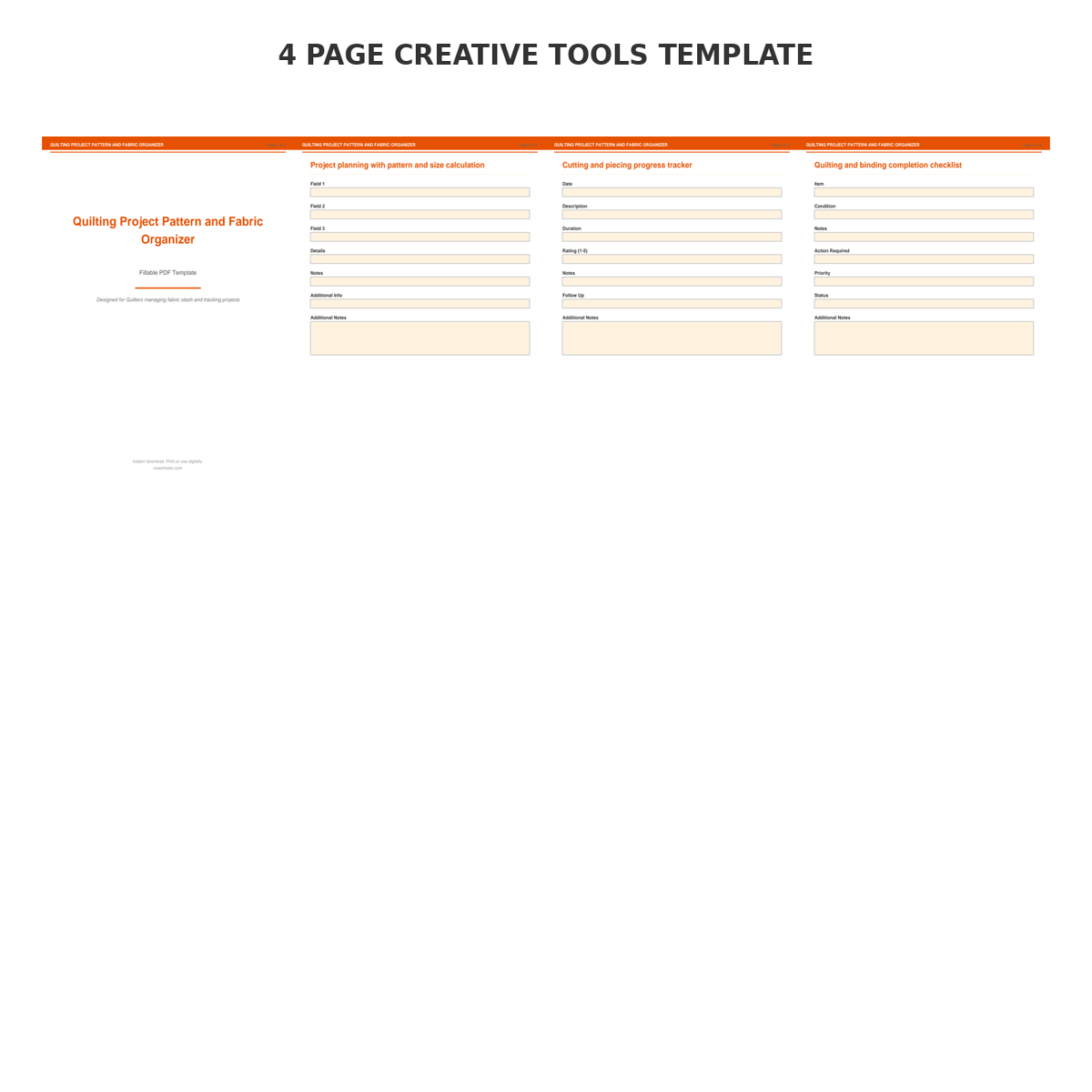 If you have been looking for a quilting project pattern and fabric organizer that actually works the way you need it to, this is it. We designed this 4 page fillable PDF specifically for Quilters managing fabric stash and tracking projects who want something practical, organized, and ready to use right away.
