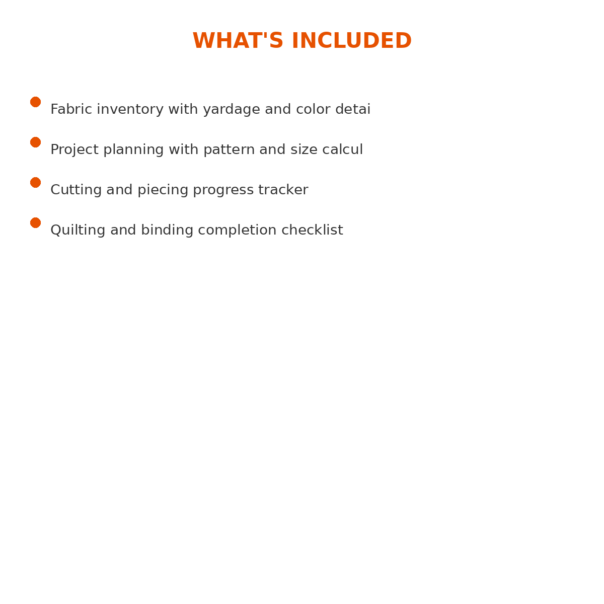This template was built for Quilters managing fabric stash and tracking projects. Whether you are just getting started or have been at it for years, having a proper system saves you time and keeps everything in one place. No more scattered notes, forgotten details, or reinventing the wheel every time.