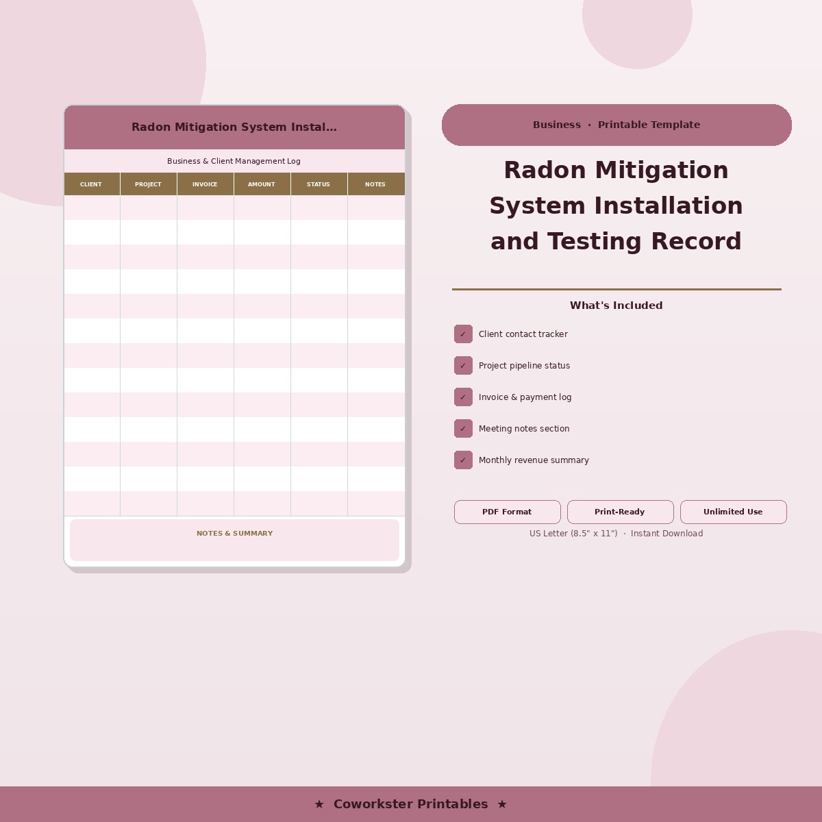 This template was built for Radon mitigation companies documenting installations and post tests. Whether you are just getting started or have been at it for years, having a proper system saves you time and keeps everything in one place. No more scattered notes, forgotten details, or reinventing the wheel every time.