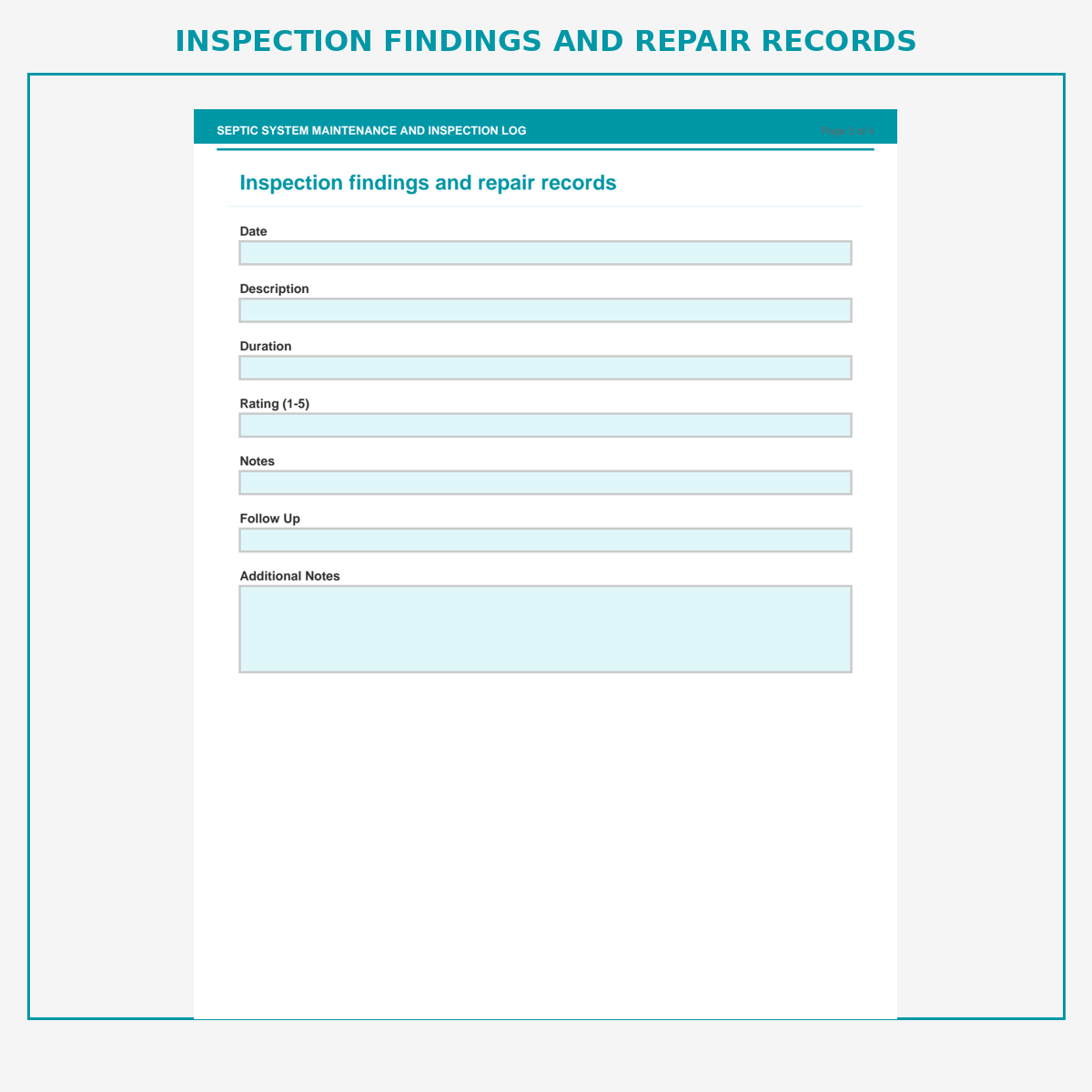 Inspection findings and repair records
