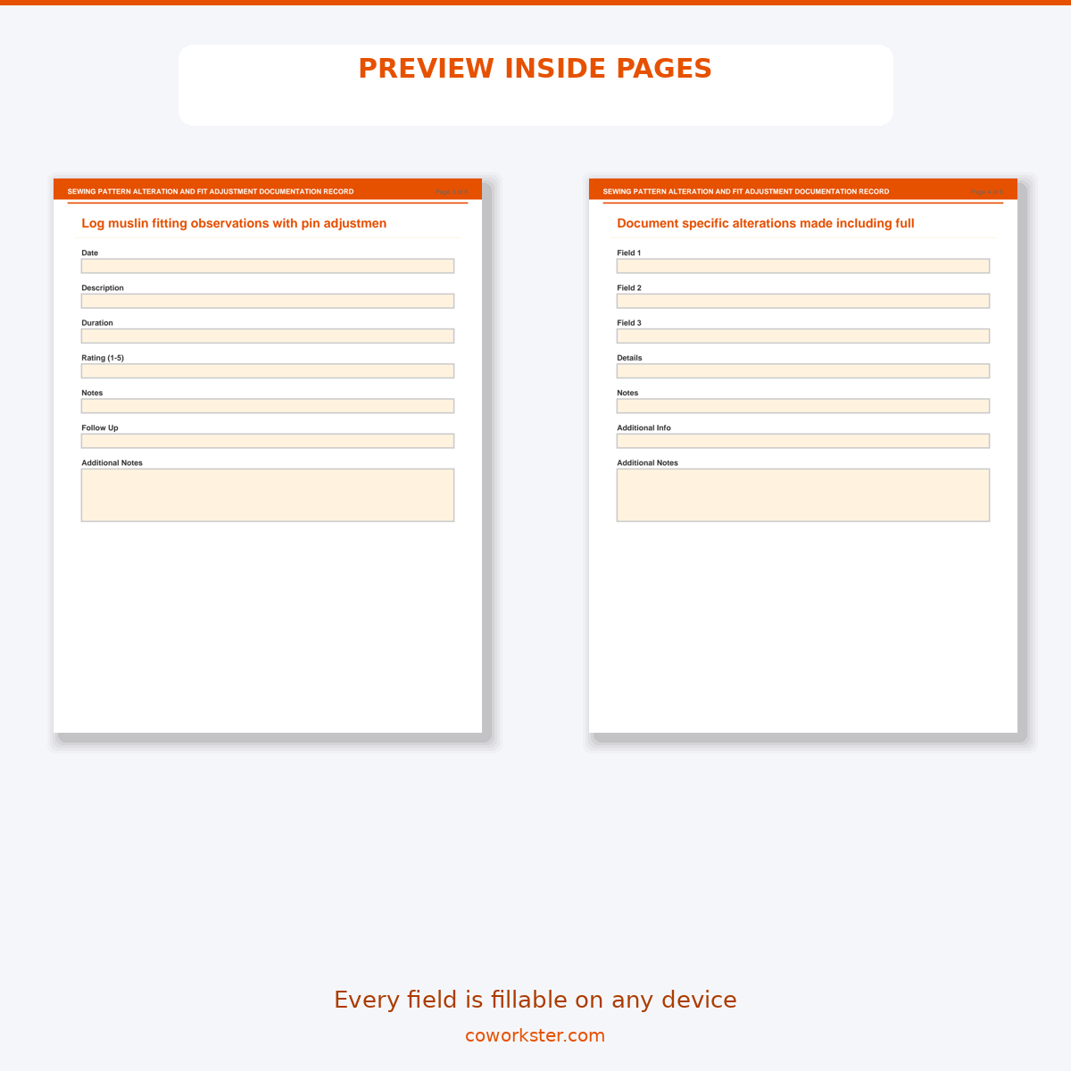 This template was built for Home sewers and garment makers tracking pattern adjustments. Whether you are just getting started or have been at it for years, having a proper system saves you time and keeps everything in one place. No more scattered notes, forgotten details, or reinventing the wheel every time.