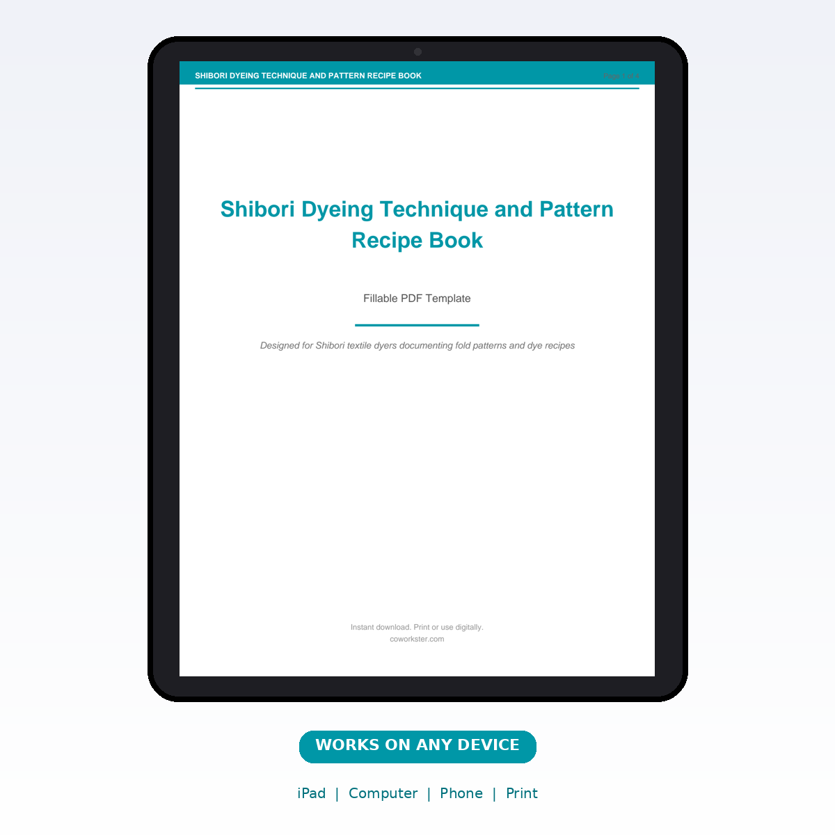 If you have been looking for a shibori dyeing technique and pattern recipe book that actually works the way you need it to, this is it. We designed this 4 page fillable PDF specifically for Shibori textile dyers documenting fold patterns and dye recipes who want something practical, organized, and ready to use right away.