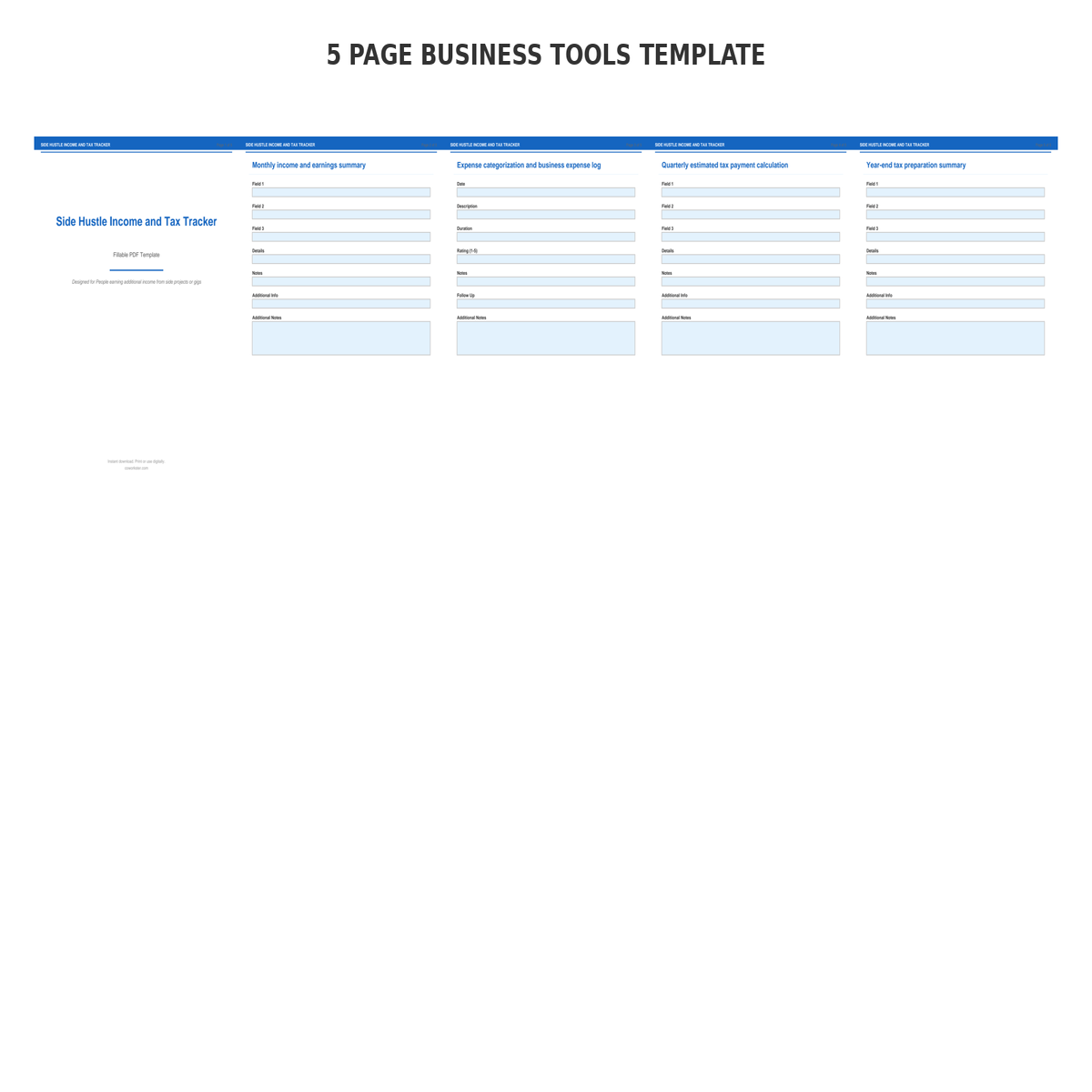 If you have been looking for a side hustle income and tax tracker that actually works the way you need it to, this is it. We designed this 5 page fillable PDF specifically for People earning additional income from side projects or gigs who want something practical, organized, and ready to use right away.