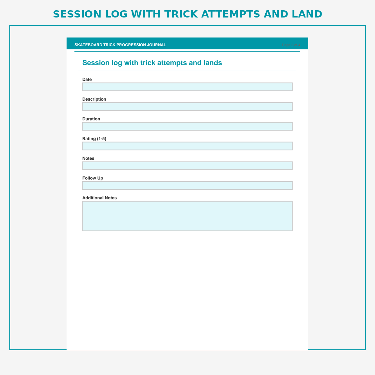 This template was built for Skateboarders tracking trick learning and session progress. Whether you are just getting started or have been at it for years, having a proper system saves you time and keeps everything in one place. No more scattered notes, forgotten details, or reinventing the wheel every time.