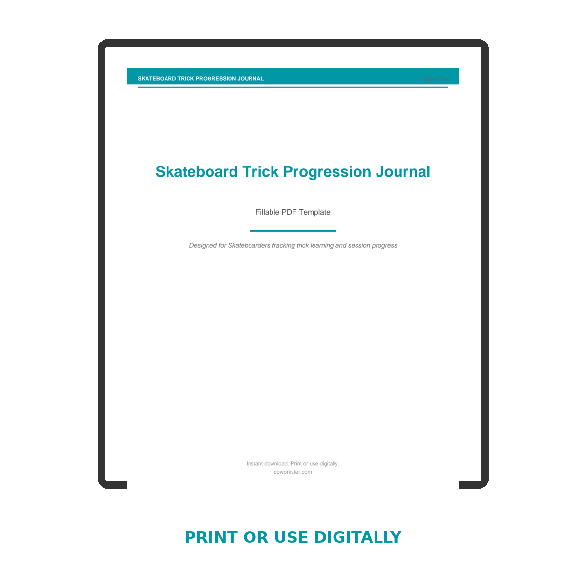 If you have been looking for a skateboard trick progression journal that actually works the way you need it to, this is it. We designed this 4 page fillable PDF specifically for Skateboarders tracking trick learning and session progress who want something practical, organized, and ready to use right away.