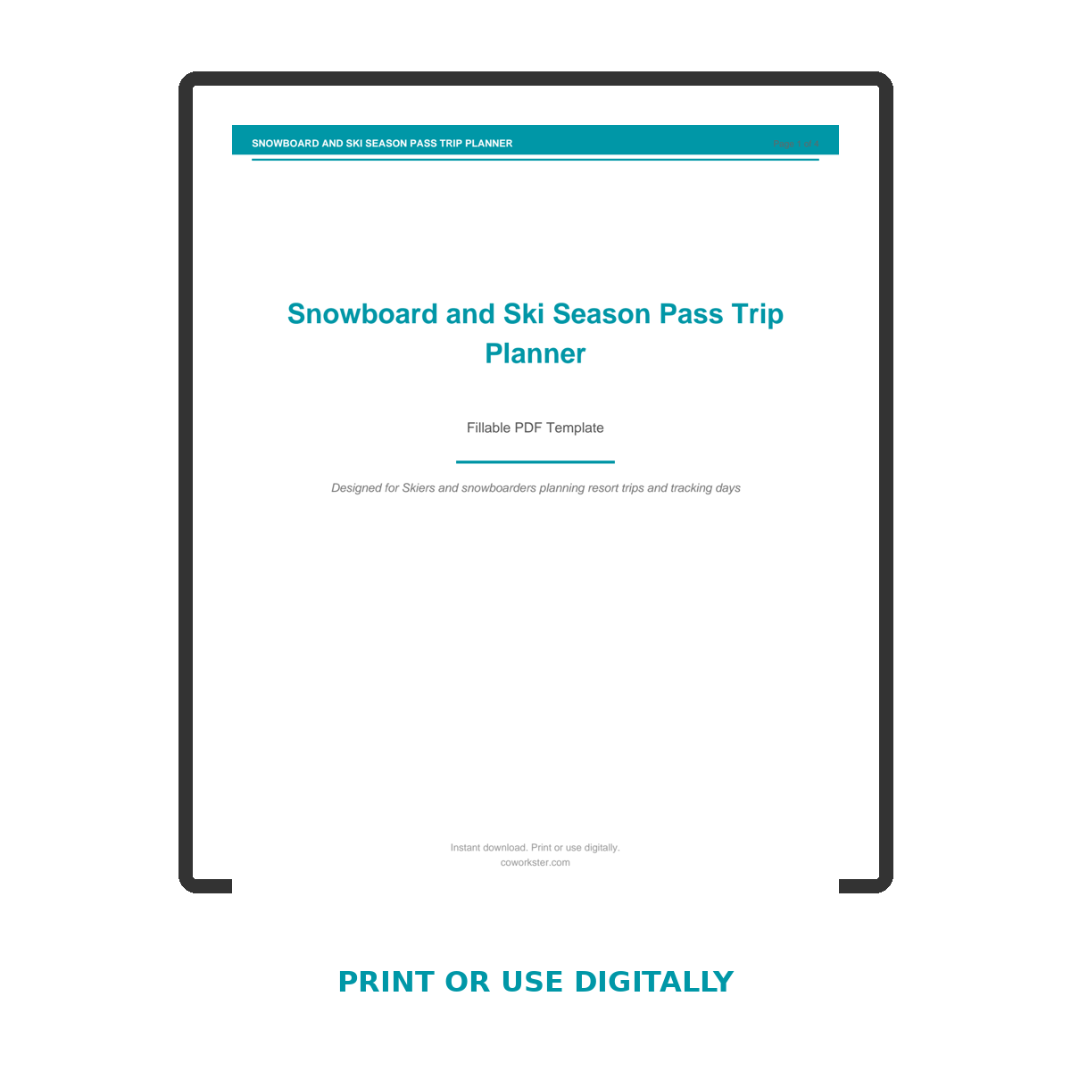 If you have been looking for a snowboard and ski season pass trip planner that actually works the way you need it to, this is it. We designed this 4 page fillable PDF specifically for Skiers and snowboarders planning resort trips and tracking days who want something practical, organized, and ready to use right away.