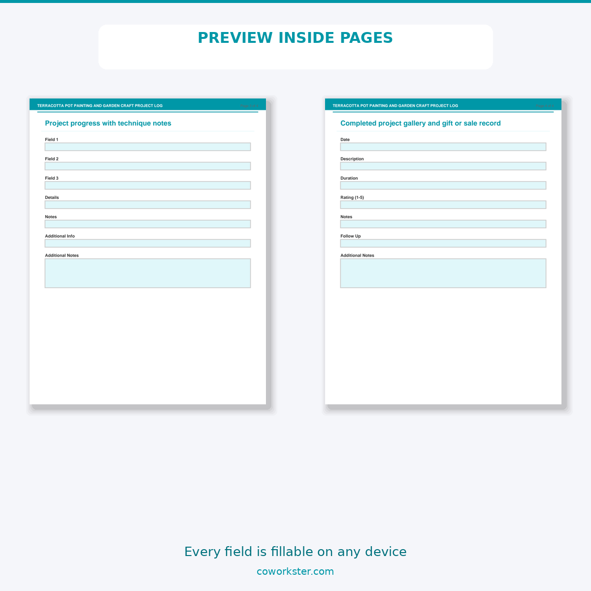 This template was built for Garden crafters documenting painted pot projects and techniques. Whether you are just getting started or have been at it for years, having a proper system saves you time and keeps everything in one place. No more scattered notes, forgotten details, or reinventing the wheel every time.