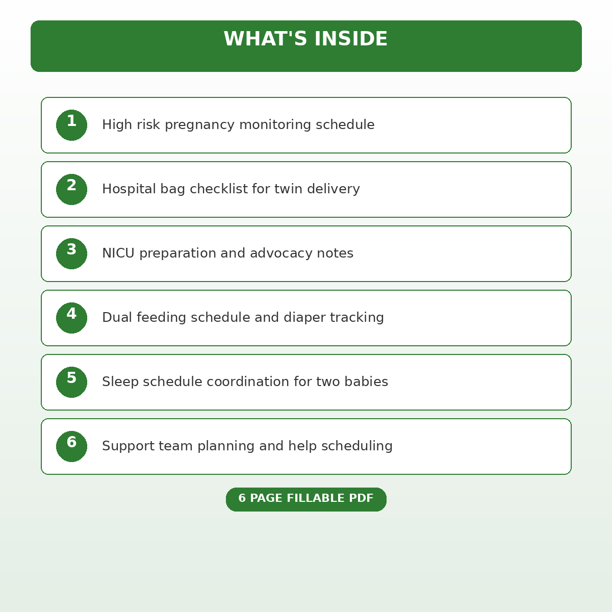 If you have been looking for a twins pregnancy and postpartum planner that actually works the way you need it to, this is it. We designed this 6 page fillable PDF specifically for Parents expecting twins preparing for arrival and early months who want something practical, organized, and ready to use right away.