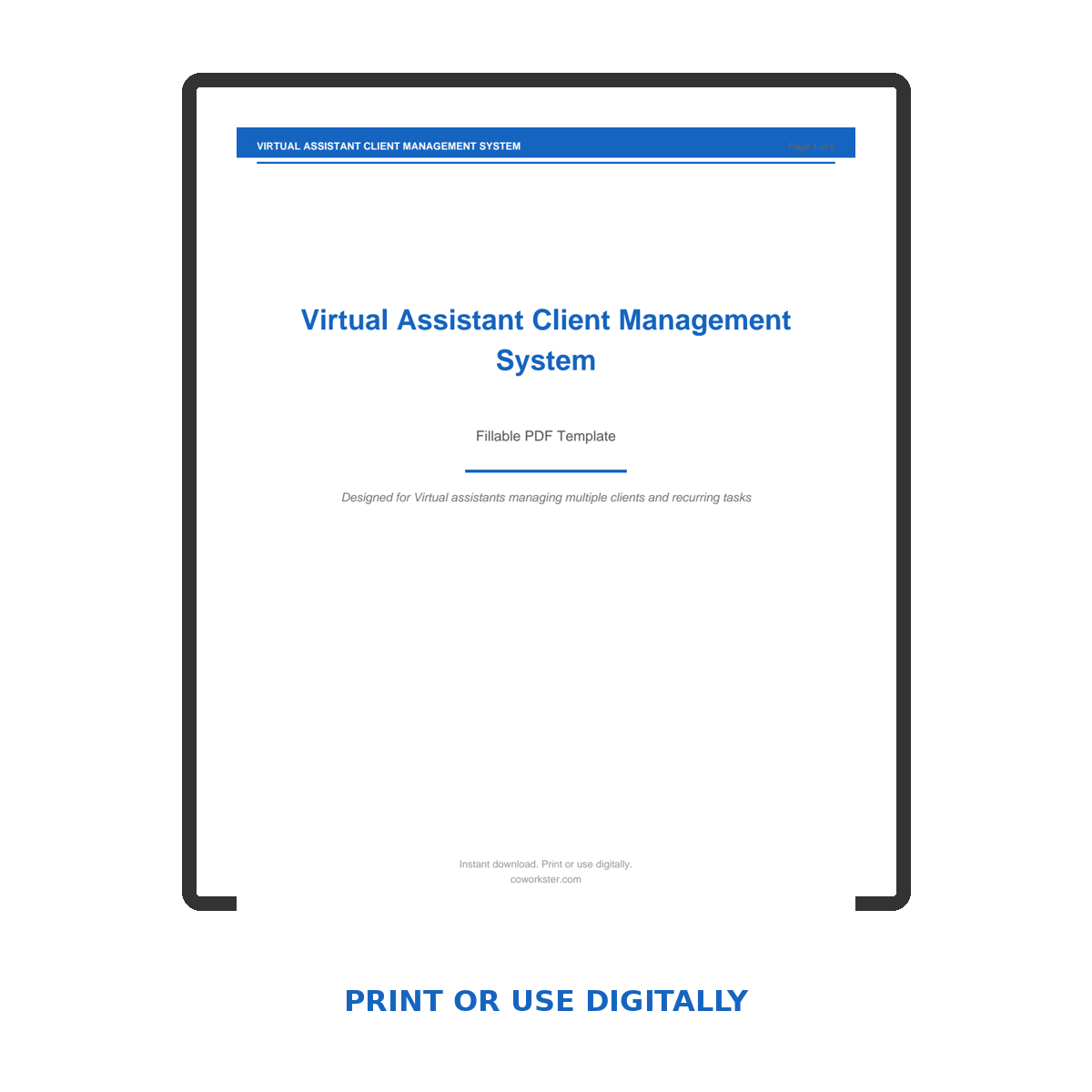 If you have been looking for a virtual assistant client management system that actually works the way you need it to, this is it. We designed this 5 page fillable PDF specifically for Virtual assistants managing multiple clients and recurring tasks who want something practical, organized, and ready to use right away.