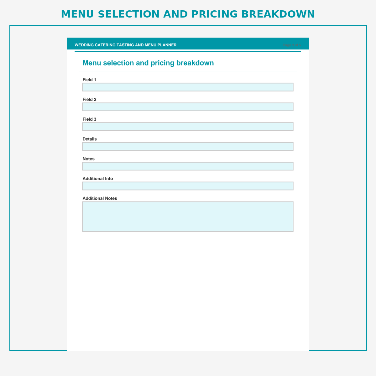 Menu selection and pricing breakdown