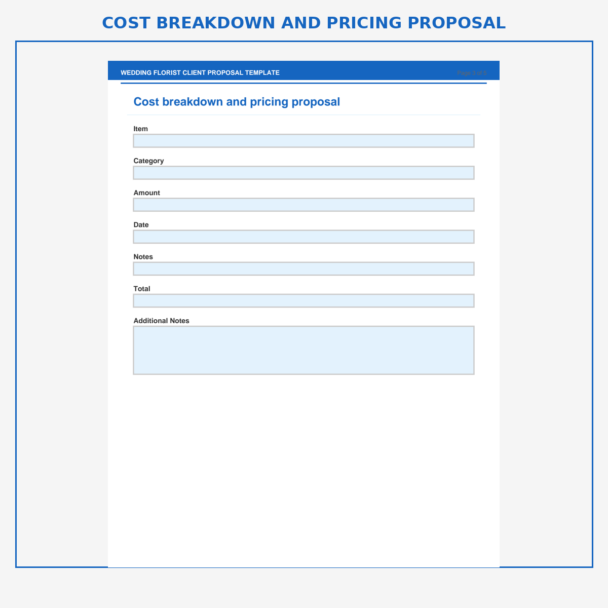 Cost breakdown and pricing proposal