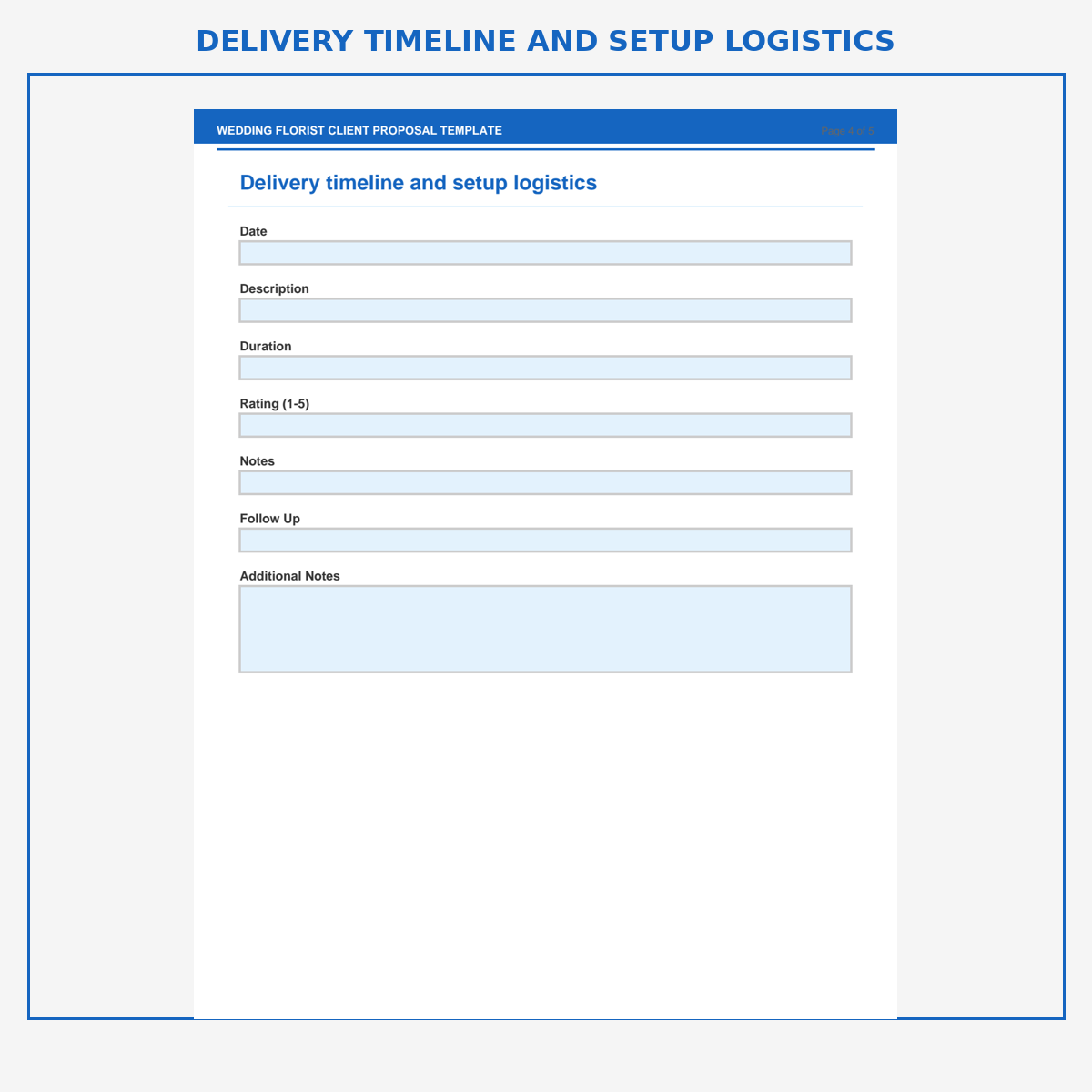 Delivery timeline and setup logistics