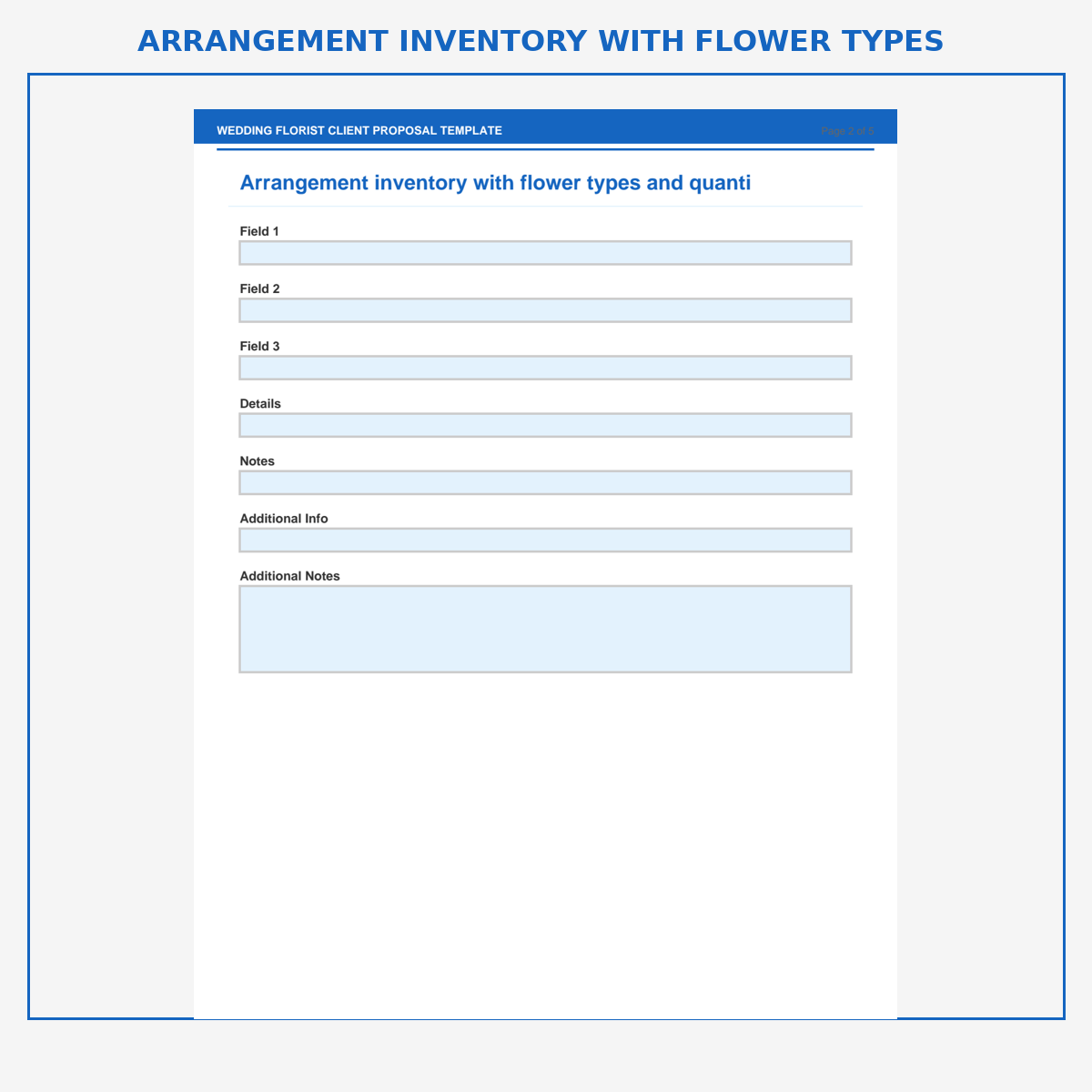 Arrangement inventory with flower types and quantities