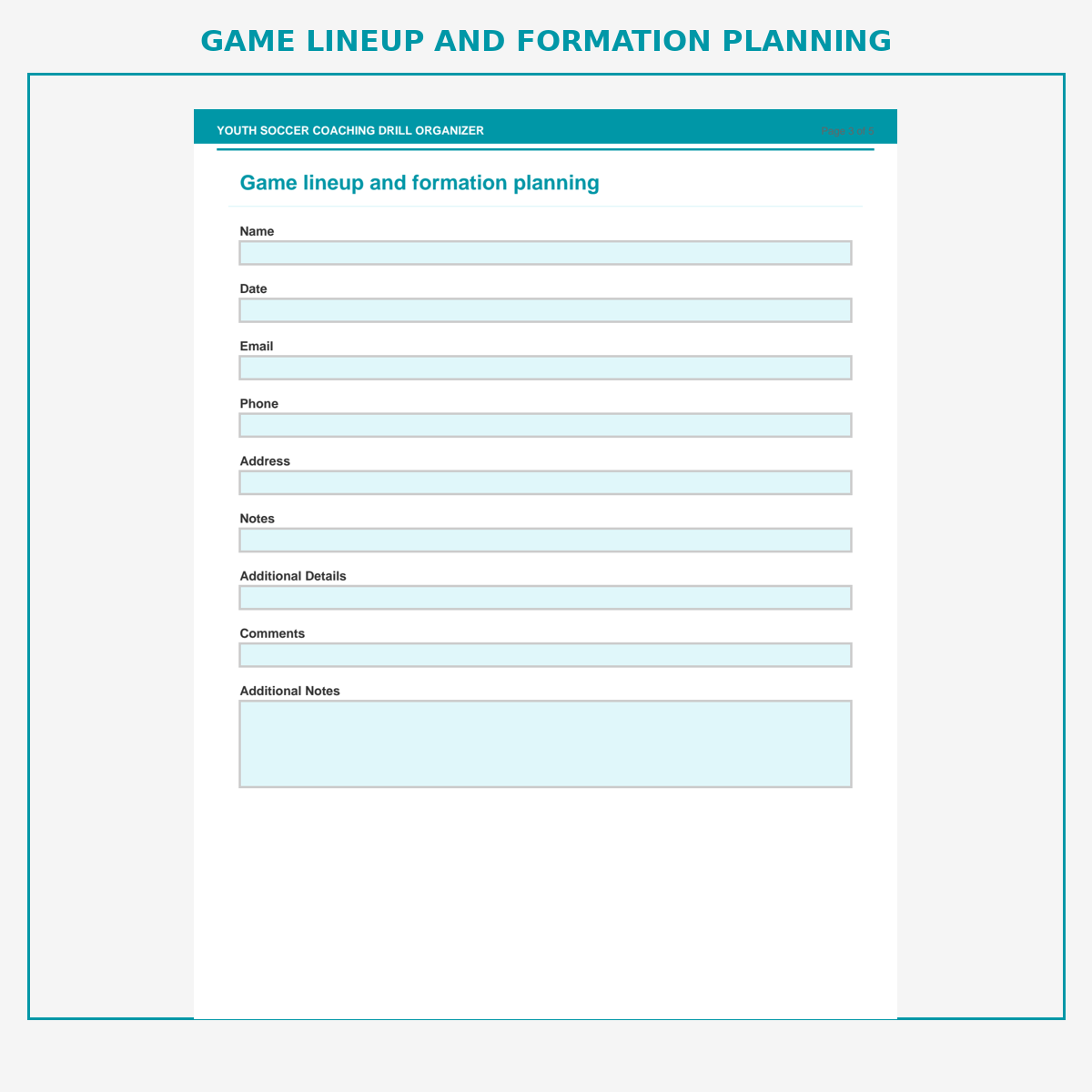 Game lineup and formation planning